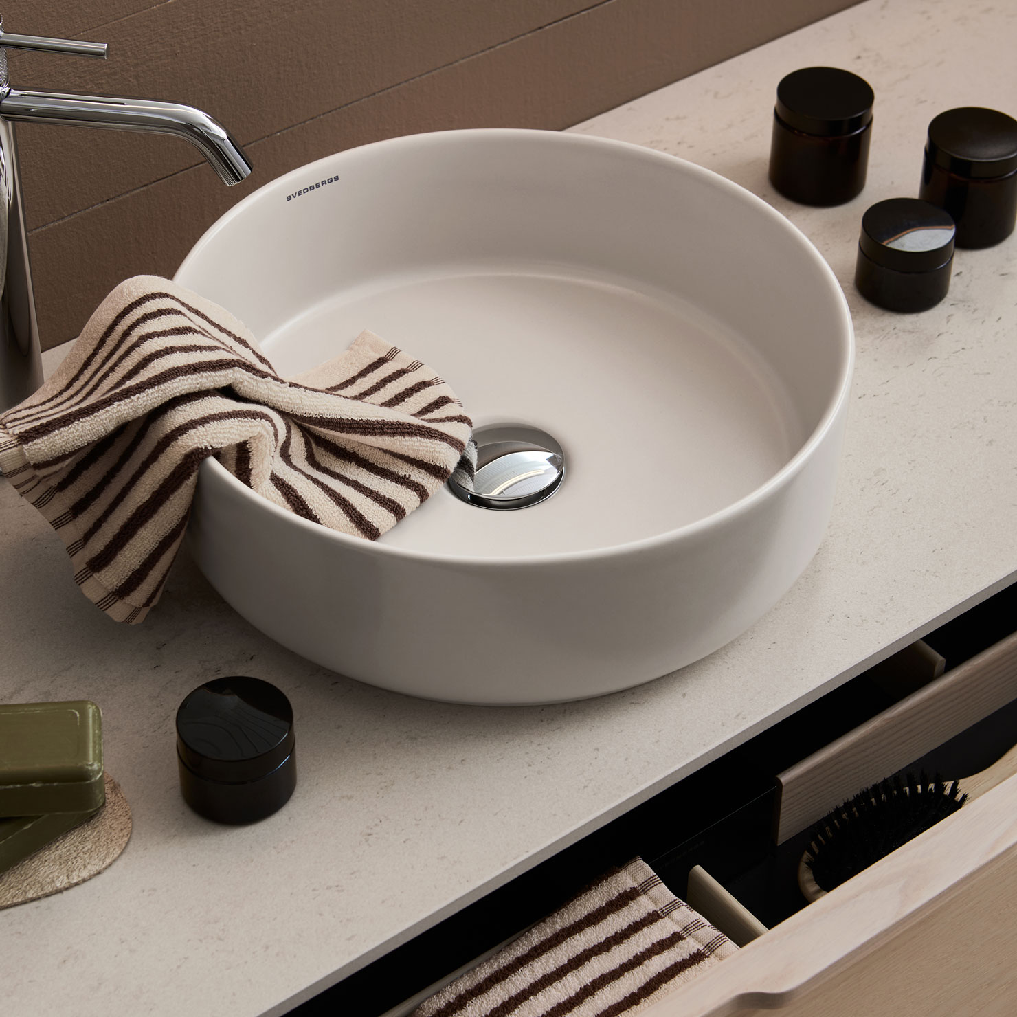 Detaljerna är pricken över i:et i badrummet och med Svedbergs design tål de att granskas på nära håll. I ett nära samarbete mellan människan och förädling av material skapas en yrkesstolthet och en strävan att leverera de allra bästa produkterna.