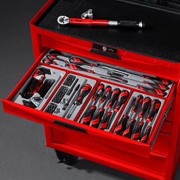 Teng Tools har ledordet ”get organised”, eftersom märket skapar ordning och reda bland alla dina verktyg. Med verktygslådor och verktygssatser där allt har sin bestämda plats jobbar man effektivt. Färgmatchningen i rött ger energi men också en harmonisk känsla av enhetlighet. Antingen du arbetar i verkstaden eller är ute på språng finns det praktiska lösningar från Teng Tools. Beställ dessa populära kvalitetsverktyg till ett bra pris hos oss på nätet.
