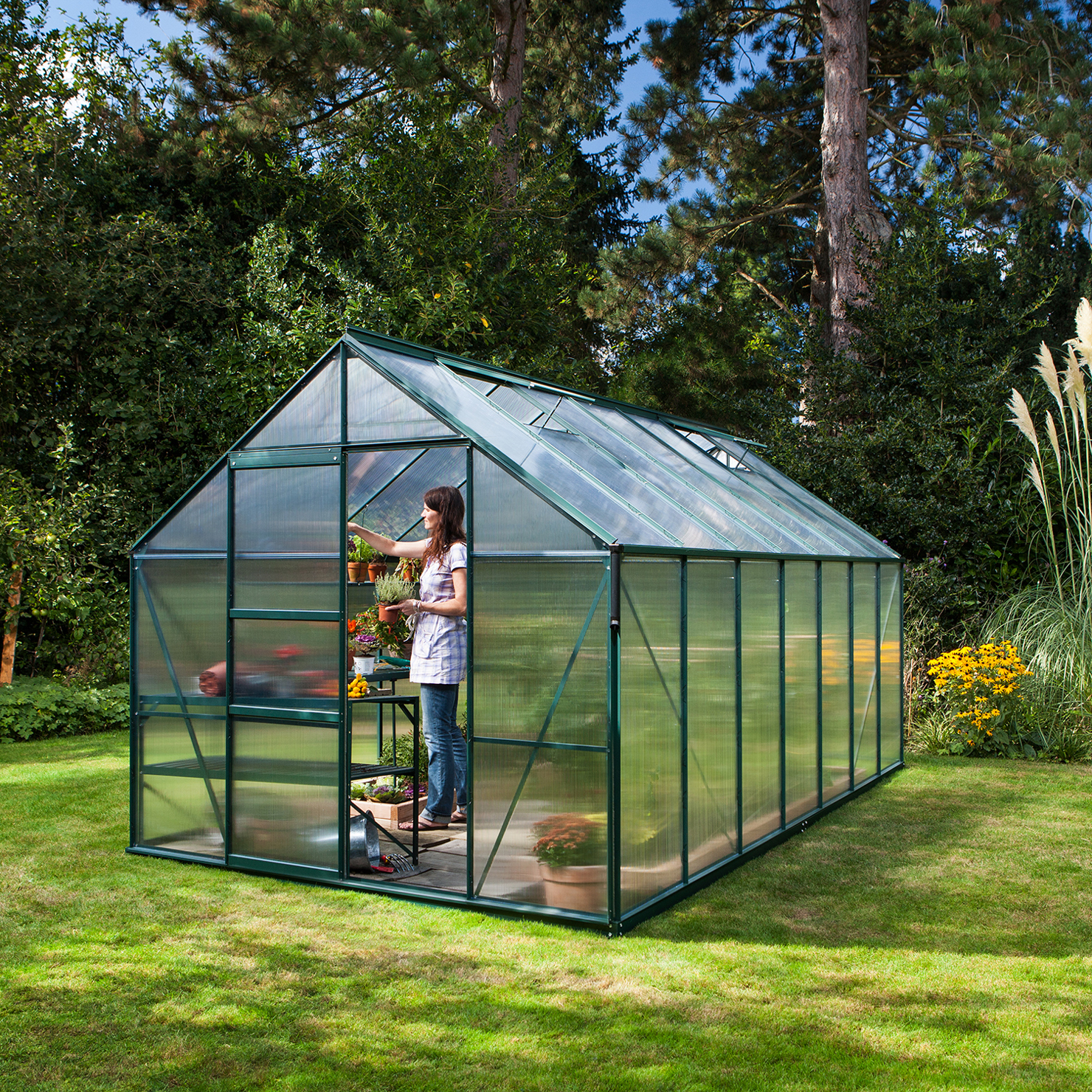 Växthus Vitavia Poseidon Aluminiumstomme med UV-Skyddat Polykarbonat & Härdat Glas, 10 m²