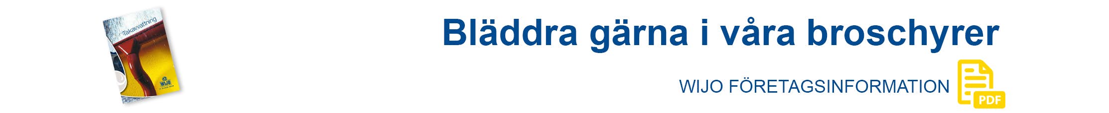 Wijo tillverkar produkter för takavvattning så som stuprör och hängrännor men även skyddsprodukter för exempelvis trösklar, tak och fönsterbläck. I sortimentet hittar du alla delar och tillbehör du behöver för att enkelt montera Wijos avvattningssystem. Wijo har ett komplett sortiment med tio olika kulörer som produceras i Örnsköldsvik i Sverige. Wijo använder bara svensktillverkat stål i sina system.
